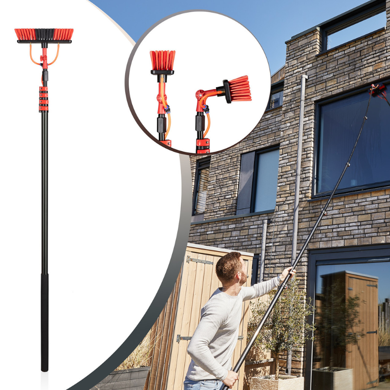 De uitschuifbare telescopische steel is een van de opvallende kenmerken van deze waterborstel. Met een maximale lengte van 4,6 meter kunt u gemakkelijk dakgoten, daken en hoge muren schoonmaken zonder dat u een ladder nodig heeft. De telescopische steel kan op elke lengte tussen de minimale en maximale lengte worden ingesteld, waardoor hij perfect is voor alle reinigingstaken.
